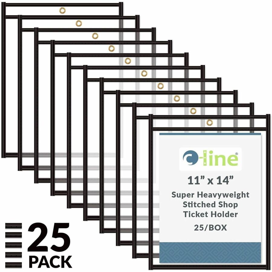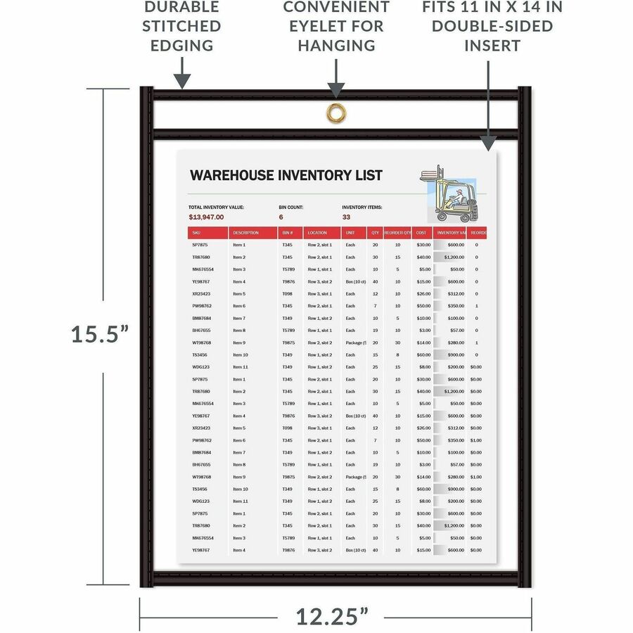 | Marketing Information | Store and protect work orders, production schedules, inventory cards and more in these stitched, shop ticket holders. Strong, rigid, clear vinyl allows easy visibility of documents. Convenient eyelet at top allows hanging. Reinforced stitched edge delivers longer product life. Both sides are clear. Holders open on short side. |