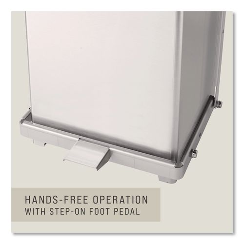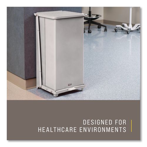 Rubbermaid Commercial Defenders Step-On Trash Can with Plastic Liner complies with OSHA standards on blood borne pathogens for the safe containment of infectious waste. These step-on trash cans feature a foot pedal for hands-free operation. Trash can is finished in powder-coat and is State Fire Marshal listed.