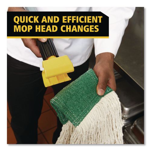 Plastic jaws firmly grip mop head. Allows quick mop changes. Ideal for 5" wide headband mops.