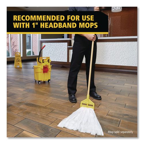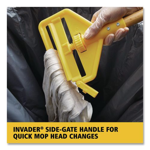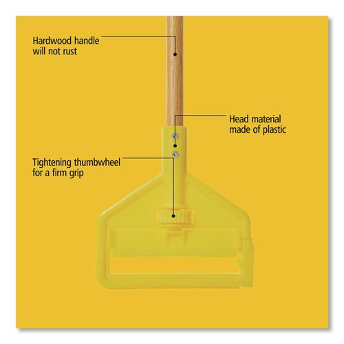 Easy-change, side-gate design allows you to quickly slide mop heads on or off. Adjustable thumb wheel enables stress-free, tight and secure clamp down. Solvent- and acid-resistant frame enables use with all commercial floor stripping agents.