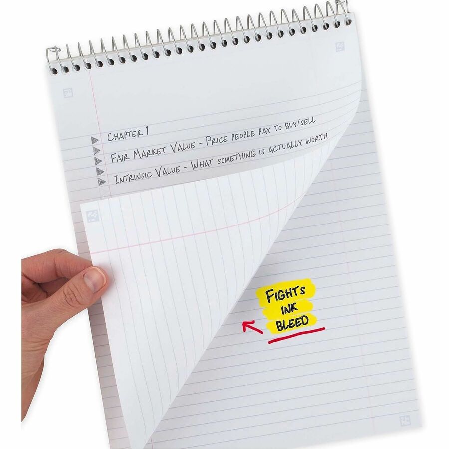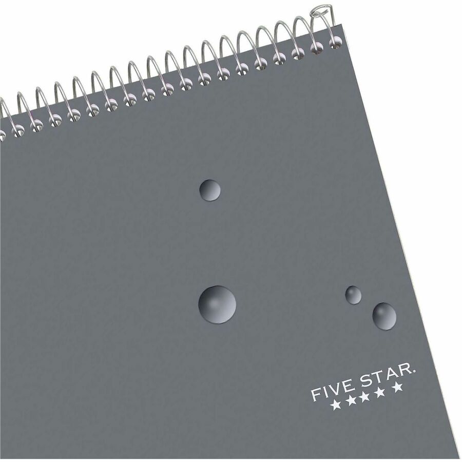 | Marketing Information | Choose a notepad that keeps up with your busy school day. The Five Star One-Subject Notepad is the smart choice for all your note-taking needs. Water-resistant covers protect notes all year. Notepad contains 100 college-ruled sheets. High-quality paper resists ink bleed. Neat Sheet perforated pages easily tear out with clean edges. Top binding allows easy page flipping so this notepad is also great for left-handers with no wire binding on the side to reach across. Spiral Lock wire prevents coil snags so notepad won't get caught on your clothes or backpack. |