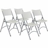 Made for true efficiency and stability, these 600 Series Folding Chairs are blow-molded, resin-plastic folding chairs that feature a heavy-duty, powder-coated 19-gauge tubular frame and a large contoured seat. They also have a backrest for added comfort. Two cross braces, both in front and in back, provide extra support. V-tip stability plugs provide added reinforcement at the frame's junction and replaceable glides prevent floor damage. Lightweight for easy transport, they are stain-resistant and perfect for easy set-up and take-down, indoors or outdoors. The 600 Series meets MAS Certified Green and ANSI/BIFMA standards. |