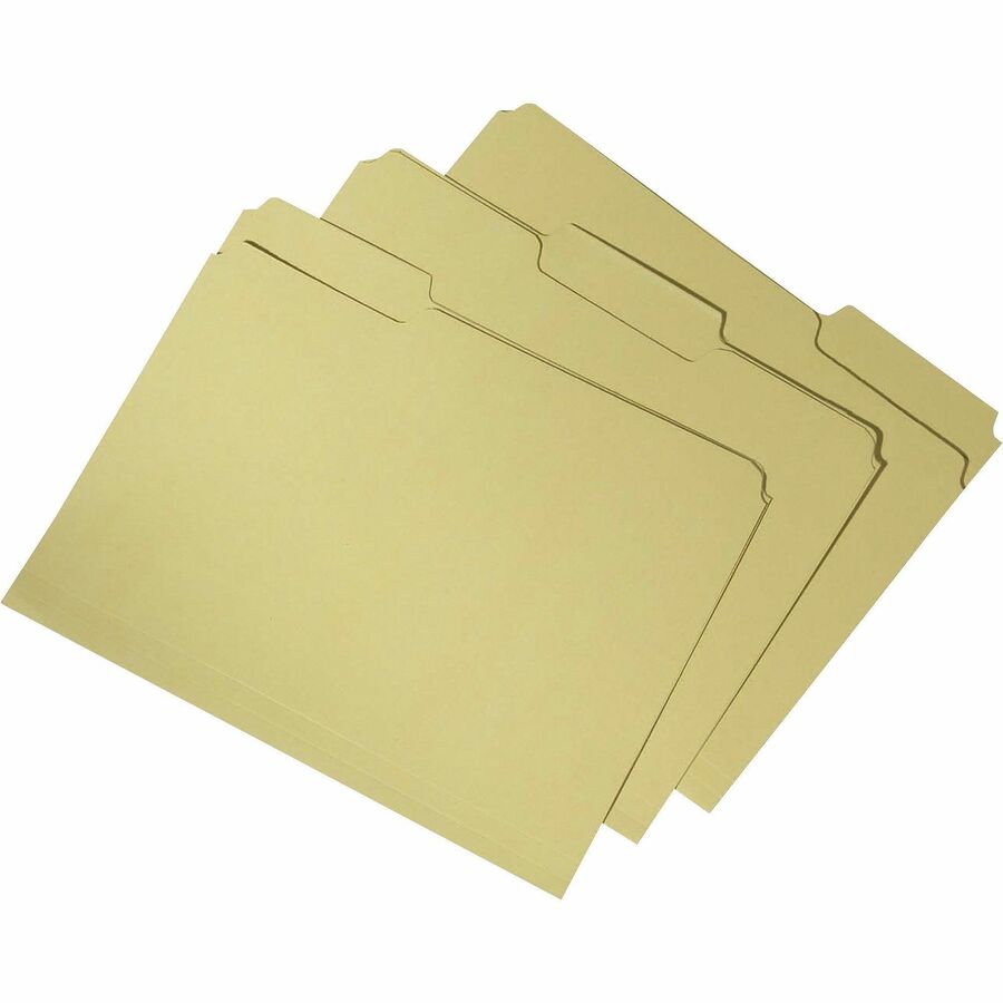 | Marketing Information | File folders are made of 100 percent recycled material with a minimum 60 percent post-consumer material. Letter-size file folders are made with a water-based adhesive and chlorine-free process to protect the environment from harmful chemicals and exceed Executive Orders 13514 and 13423. Design also features double-ply top tabs in assorted 1/3-cut positions and 11 point, acid-free stock. Tabs offer double-ply, reinforced strength. Bottom is scored for 3/4" expansion. |