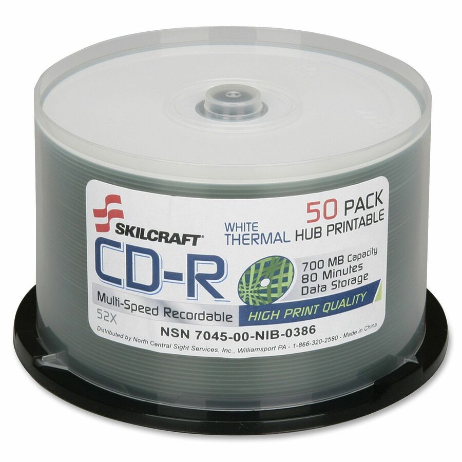 SKILCRAFT® CD Recordable Media - CD-R - 52x - 700 MB
