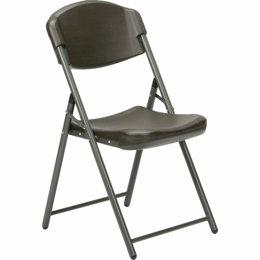 Folding chair features an ergonomically contoured design with an extra-wide seat and back to provide comfortable, all-day support whether you're indoors or out. Nestable construction allows easy, space-saving storage and quick access when additional seating is needed. Highly durable chair is made with powder-coated steel tubing, sturdy cross-bracing, and blow-molded seats and backs that resist dents, scratches and scuffs. |