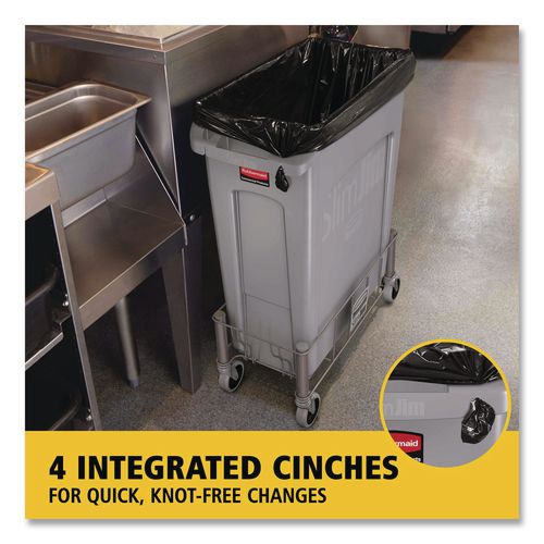 Can is designed to make trash removal easy. Venting channels take the strain out of liner removal, while the trash can's liner cinches to make removal faster. Features molded handles and base grips for easy lifting and handling. Constructed from sturdy plastic.