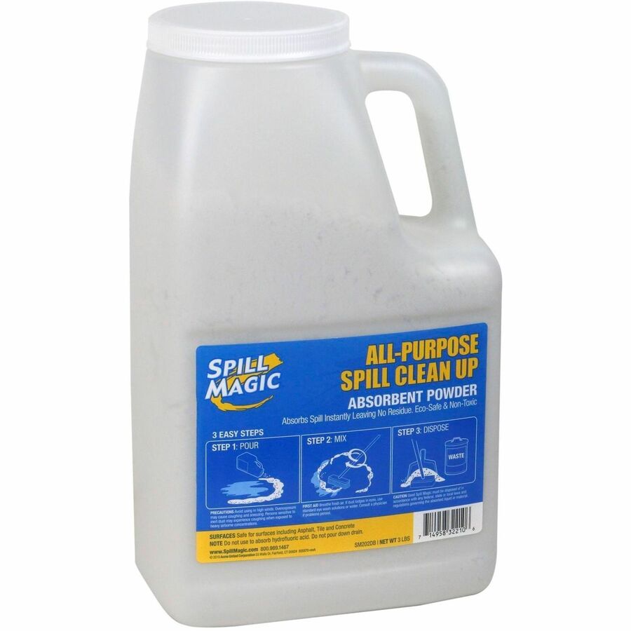 This Spill Magic All-Purpose Spill Clean Up is a light-weight, high-performance absorbent powder that removes any liquid or semi-liquid instantly. It leaves surfaces clean and dry with no leftover spill residue. Specialty powder is quick and easy to use and is non-toxic, passing EPA requirements. |
